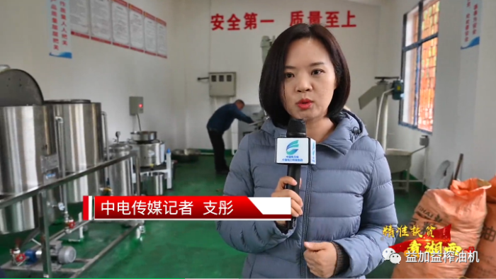 合興村支部書記彭光武指茶油的包裝成品說道,合興村這里的茶油具有不一樣的品質,現在老百姓的消費觀念在升級,如果你的油茶確實好,不怕沒有市場,就怕你生產不出真正好的茶油。壓榨油茶確實需要過硬的榨油機械。
